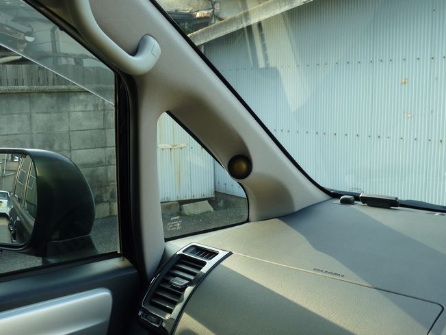 フロントドアの純正位置にソニックデザインのユニットN70Fを設置し、ツイーターは純正で設定がない車でしたので、Aピラーに角度を付けて加工取付をさせて頂きました。