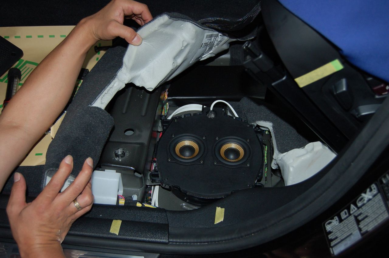本来このスピーカーはこのようなデッドニング(防振作業)が必要ないのですが、以前のスピーカーは箱(エンクロージャー)にスピーカーが入っていなかったためにこのような状態になっています。