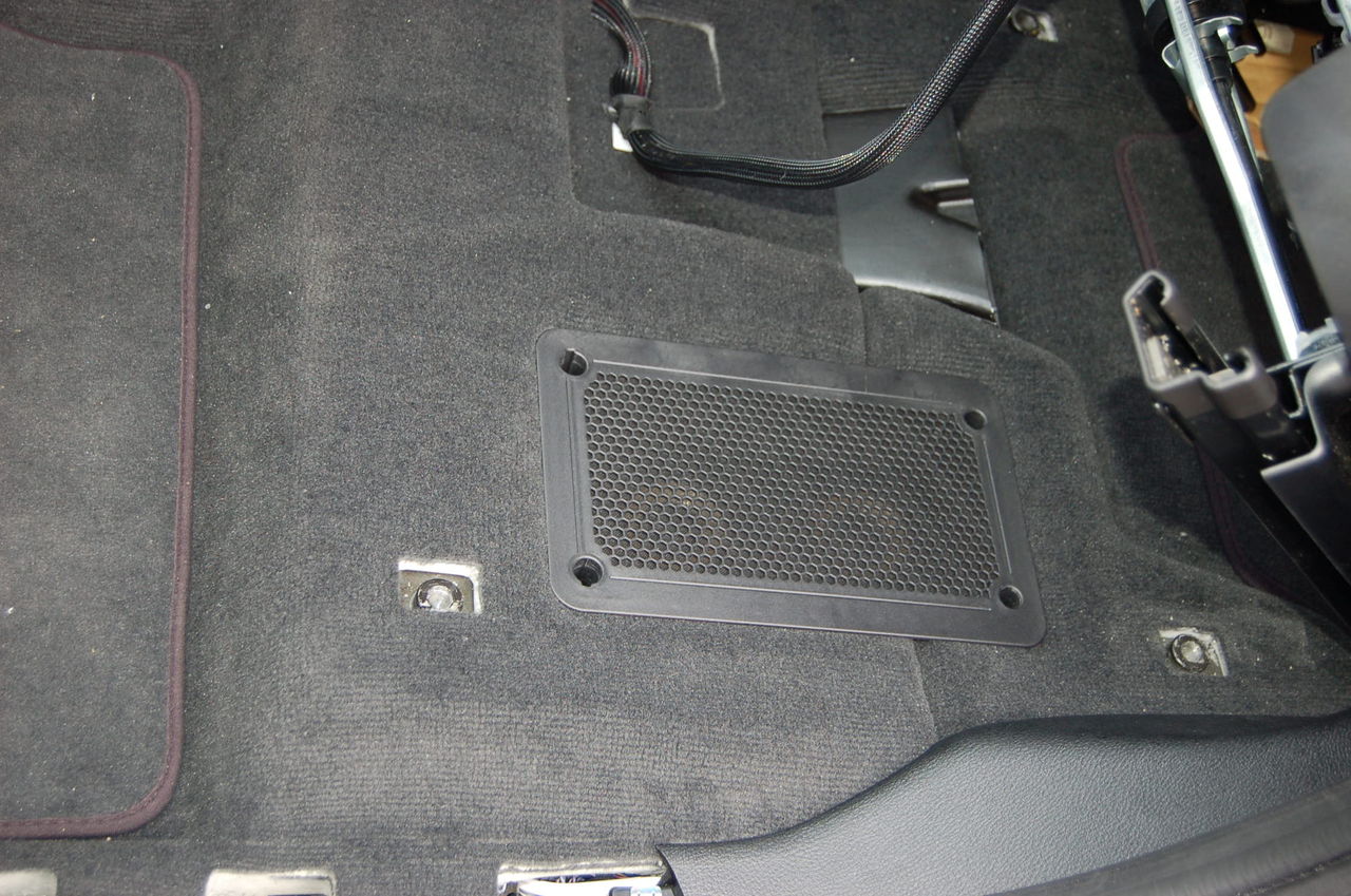 運転席シート下にサブウーハー TBM-SW77を取り付けました。