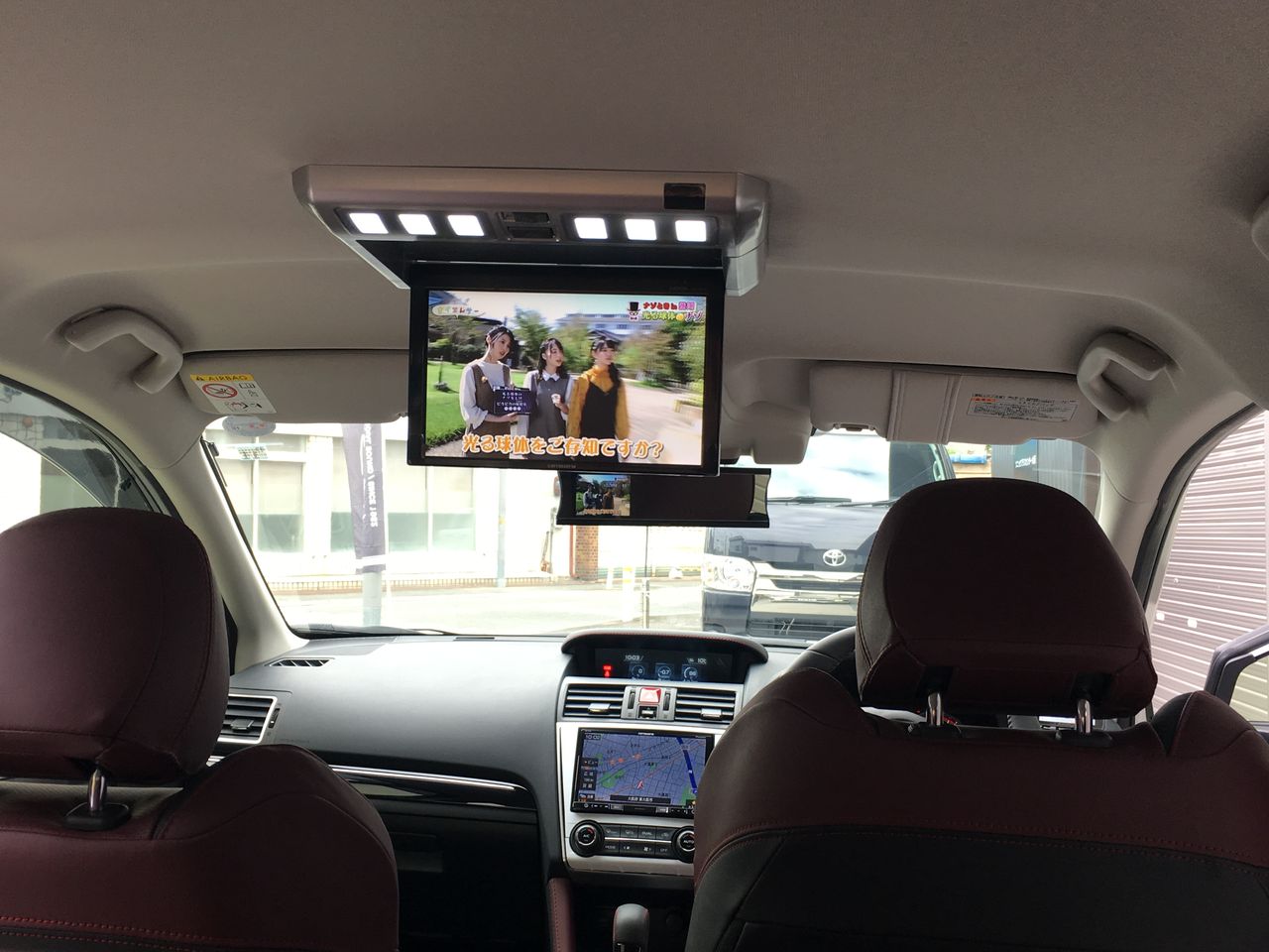 スバル系は後席のルームランプの位置にモニターを設置しますので、カロッツェリアのルームランプ付きモデルTVM-FW1030Sを取付させて頂きました。