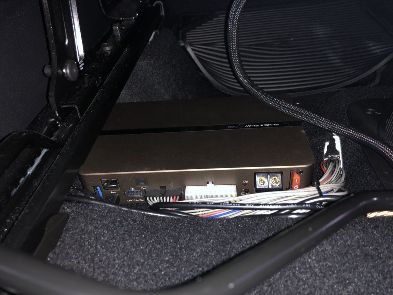 純正のデッキに、前車から載せ替えたアンプにつなぎ、スピーカー・サブウーハーを鳴らすシステムになりました。以前のお車よりシンプル仕様ですが、ご満足していただけるお車が完成いたしました