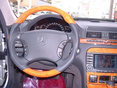 ハンドルも木目調に交換しました。AMGはシフトパドルが付いているため特別だそうです。数も少なく何とか1個確保できました。