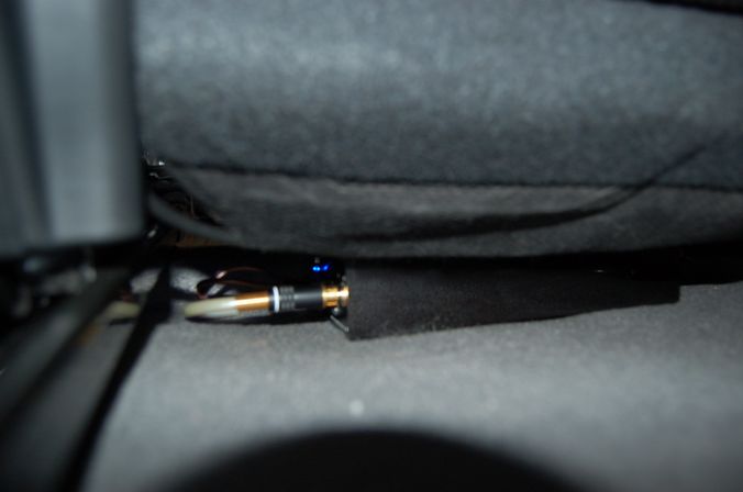 シート下が非常に狭く、サブウーハーが収まらないので、トランク床下のスペースを利用して、設置しました。