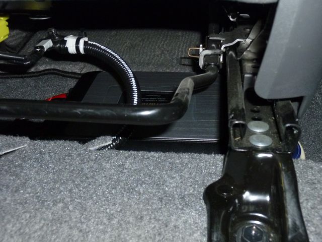 助手席シート下にはカロッツェリアのGM−D6400を設置し、フロントスピーカーとサブウーハーを駆動します。