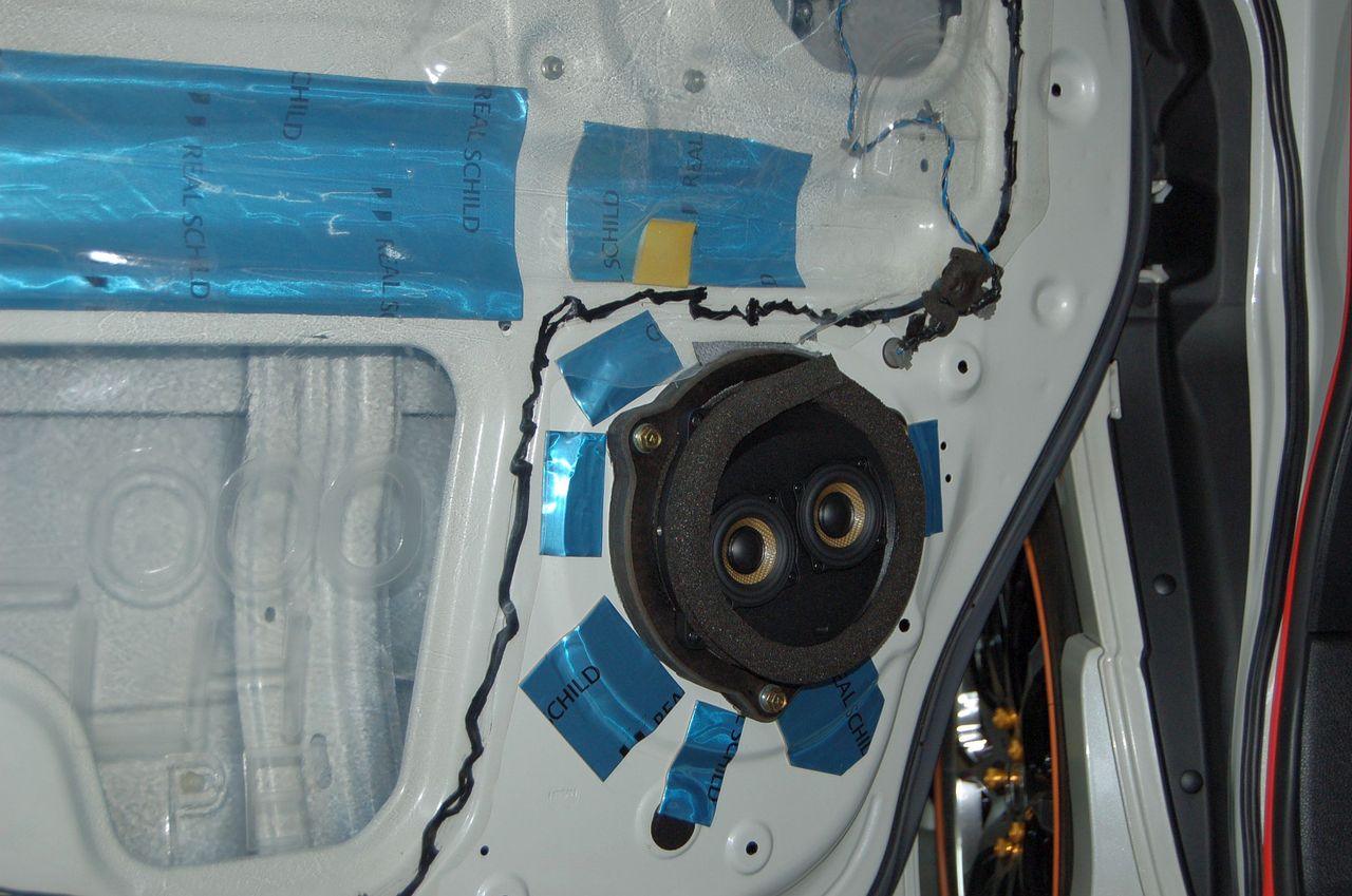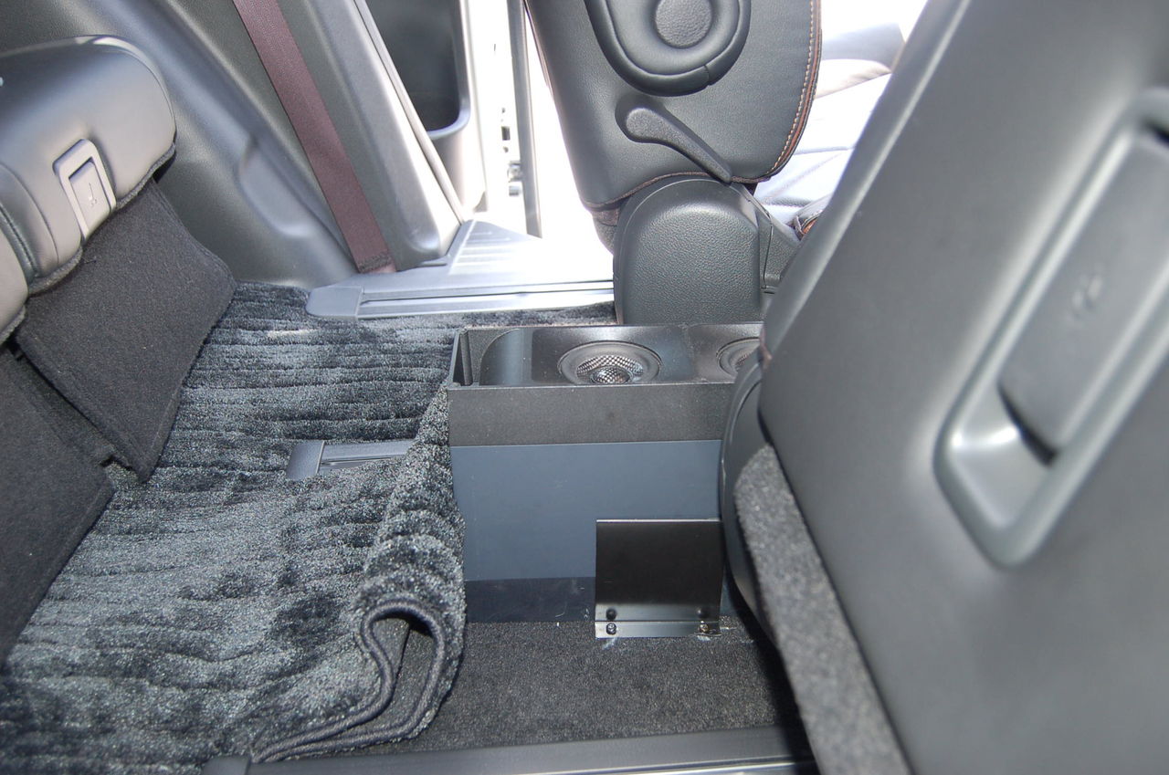 エンクロージャー方式のスピーカーのためサービスホールを埋めるようなデッドニングは致しませんが、ハイエンドシステムのため鉄板に防振材を貼り、内貼りの補強と空気振動を抑える処理をしています。