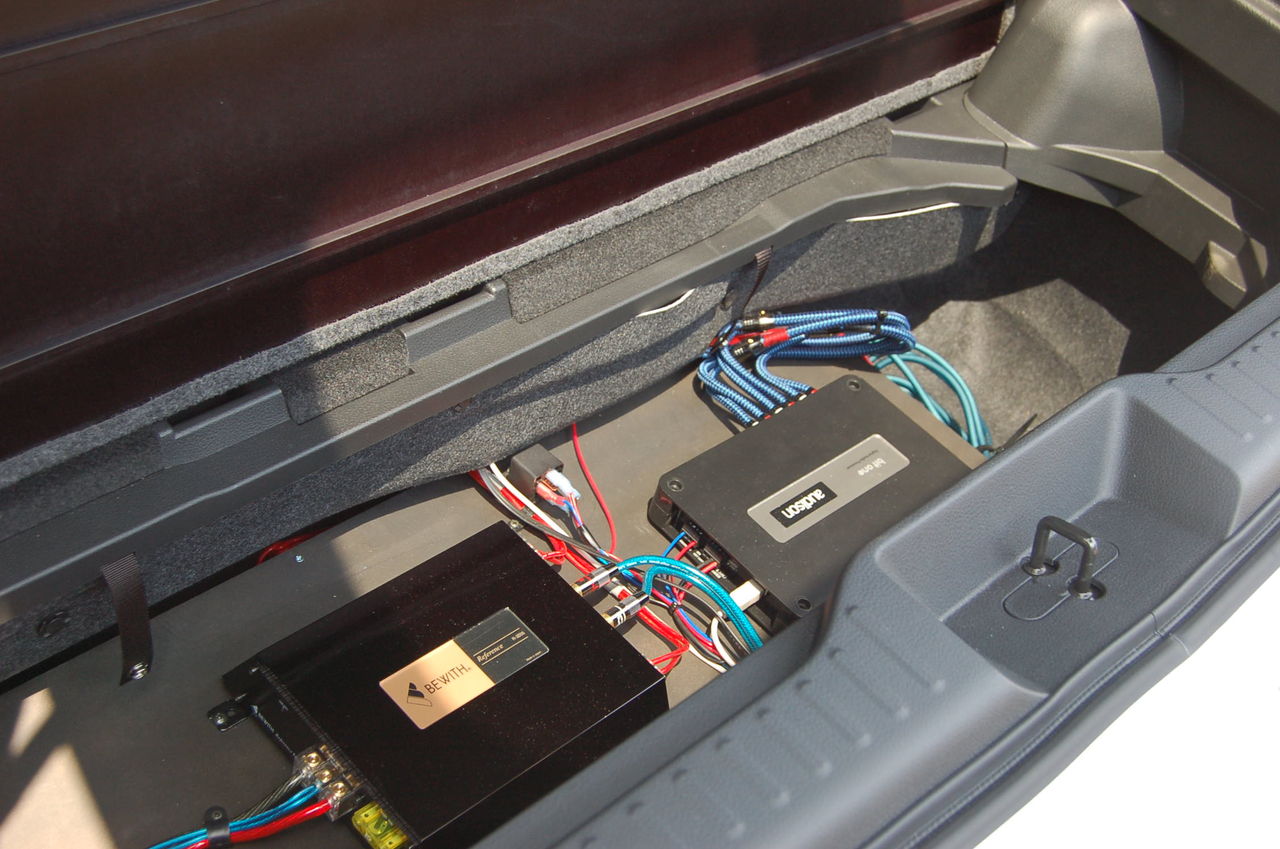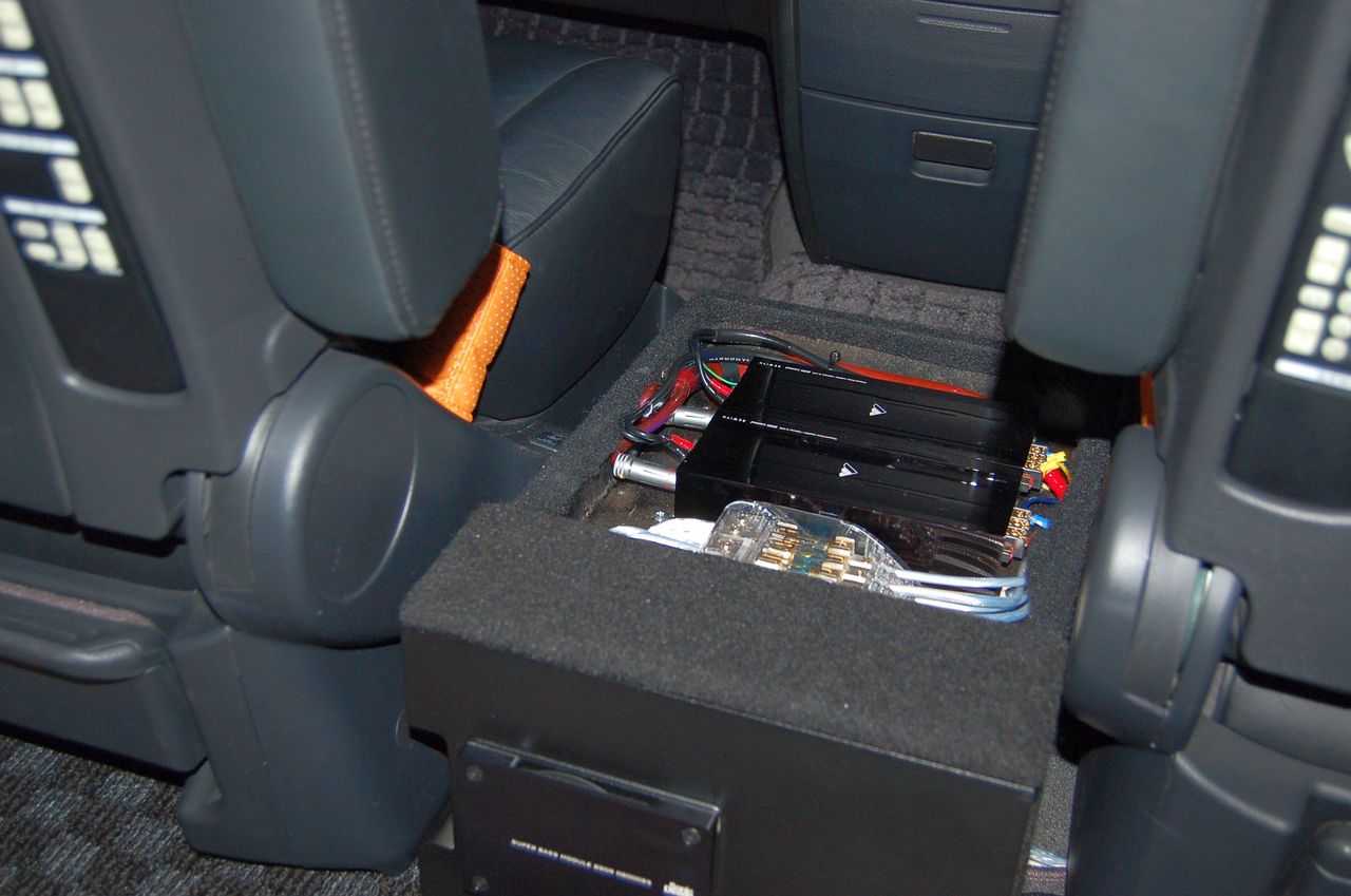 シート間のオーディオラックの後ろにはB80Rが取り付けています。