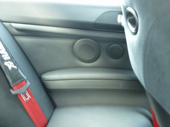 オリジナルアルミバッフルを使い、ソニックデザインのF-77をトレードインで設置しています。