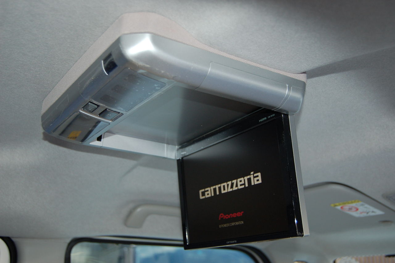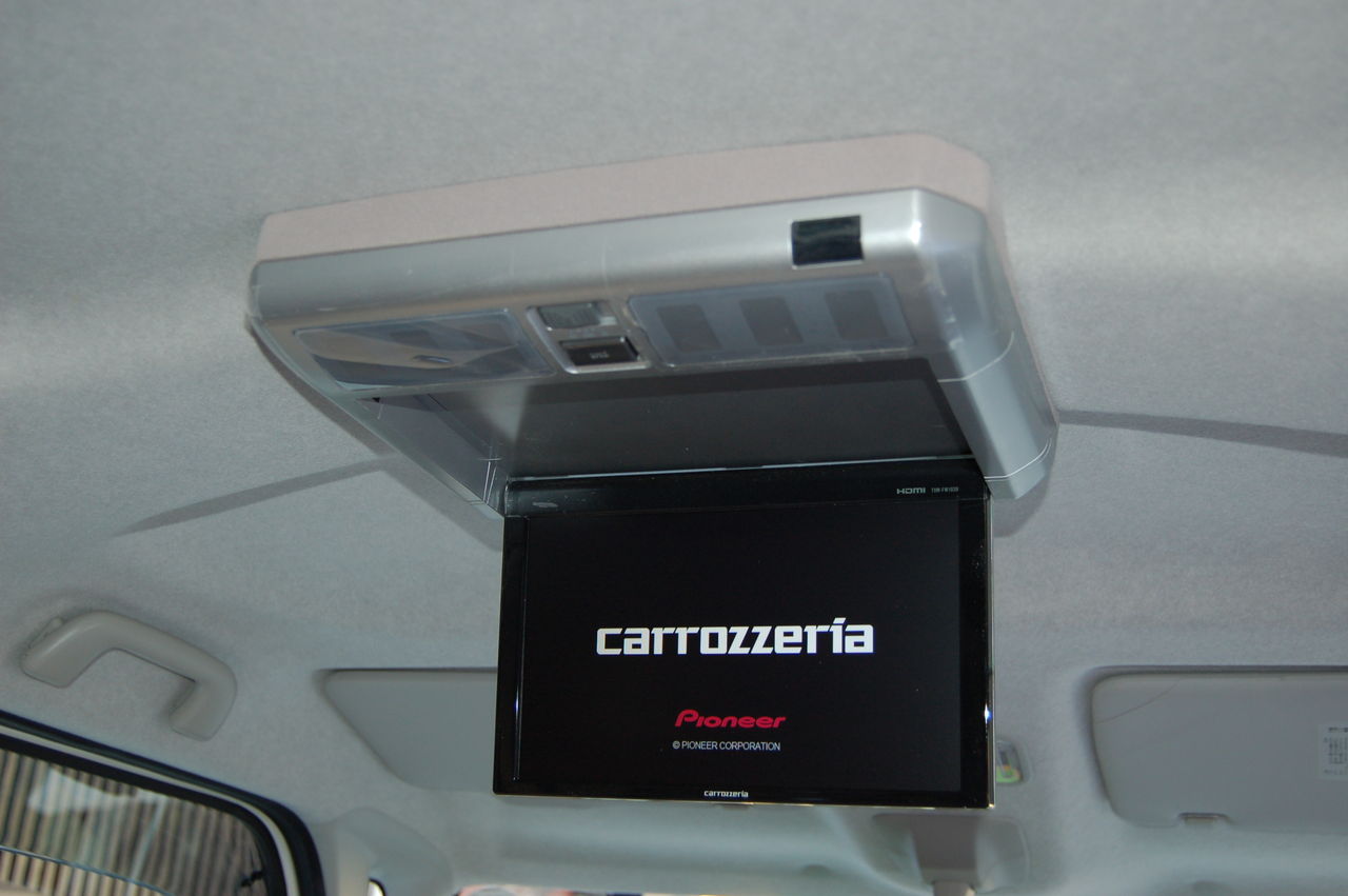 後席での乗車を快適にするため天井にフリップダウンモニターを取り付けることになりました。