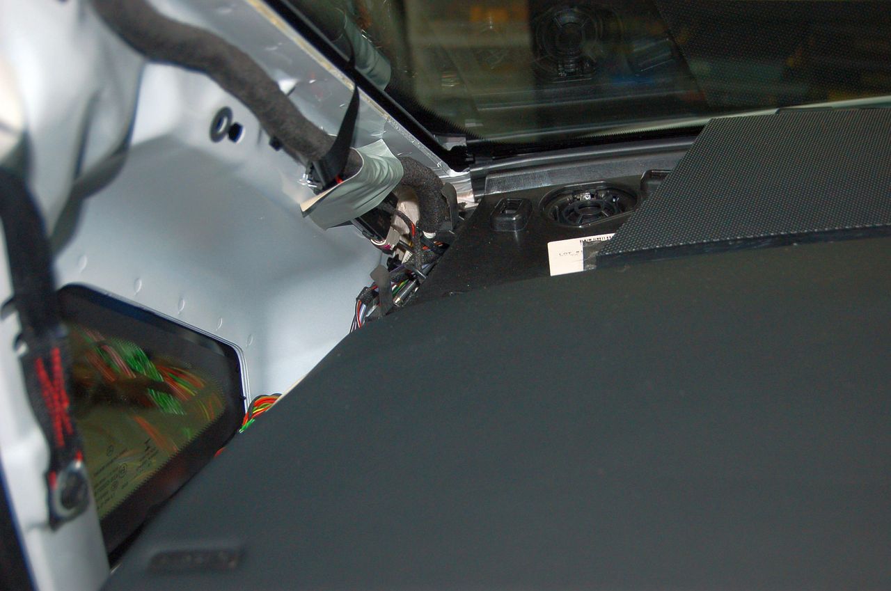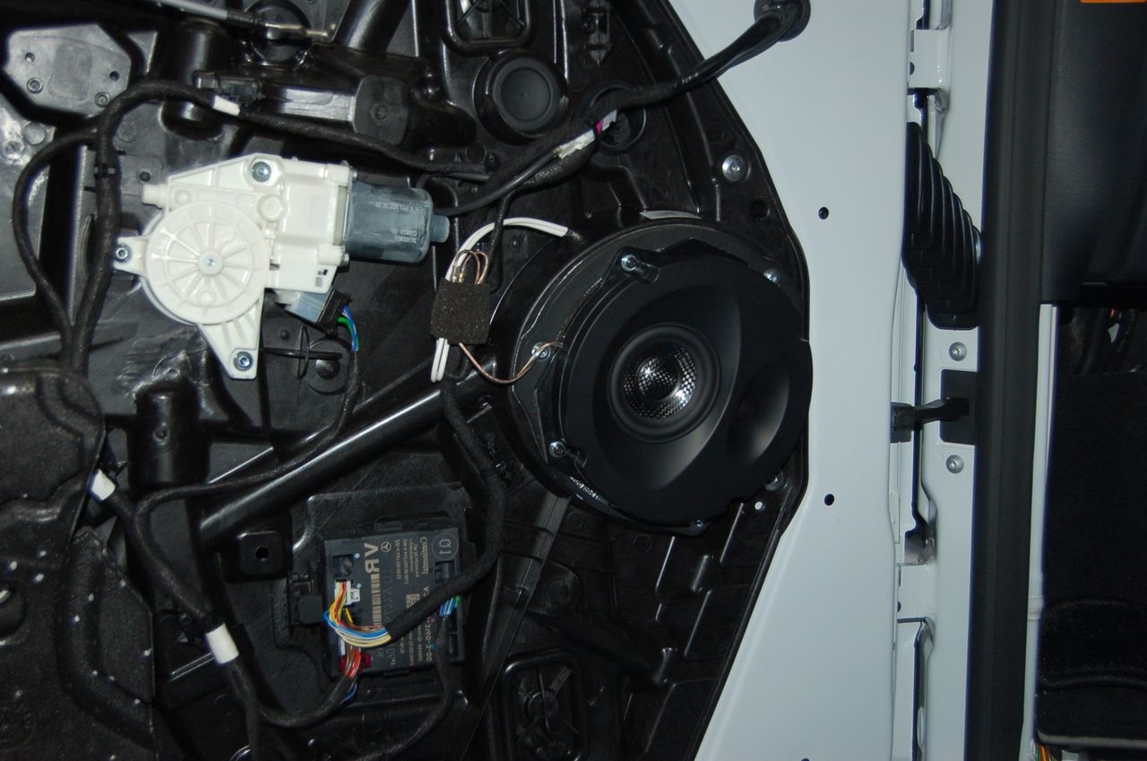 国産車と異なりメルセデスはヘッドレスト根本の通線が難しく、固定もスムーズにはいきません。
