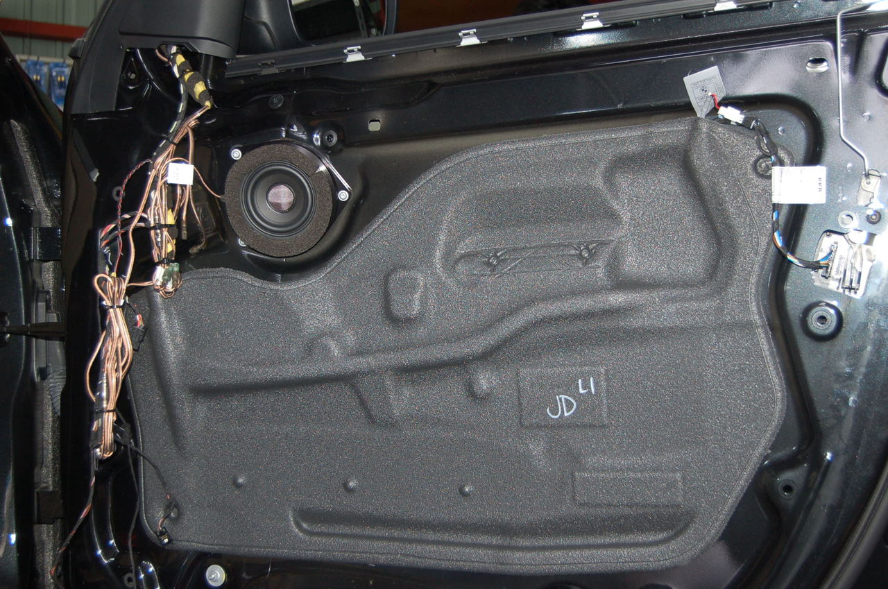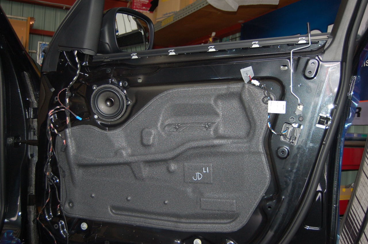高域用ツイーターは、ドアノブの前方に、純正のスピーカーネットを取り寄せし設置しています。