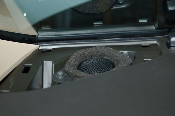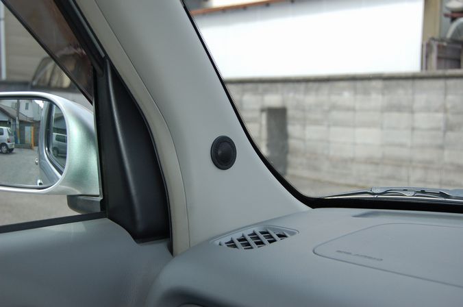 純正ではドアの下部にツイーターが付いていますが、高い位置に設置することで音がダッシュ上に広がり、臨場感あるれた音に変わりました。