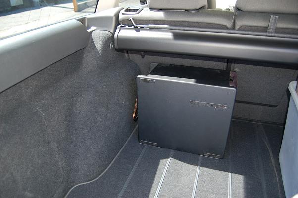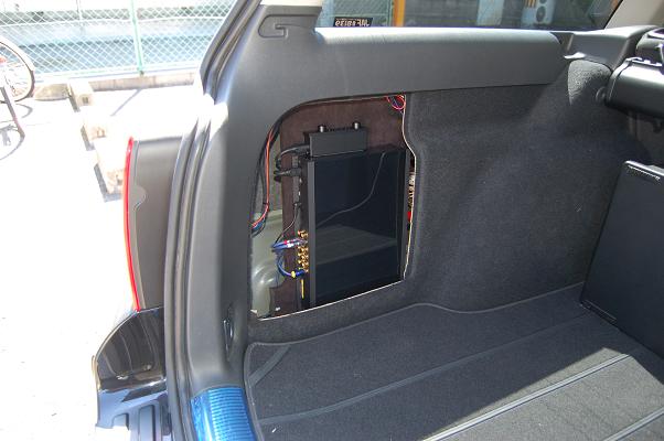 トランク右隅にサブウーハーのTBE-SW77iを設置しました。